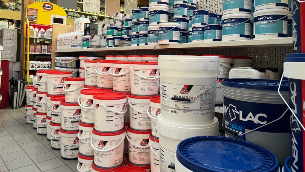 Centro specializzato in pitture e vernici con servizio tintometrico per la composizione del colore per interni e per esterni e ampia esposizione di colori e attrezzature
